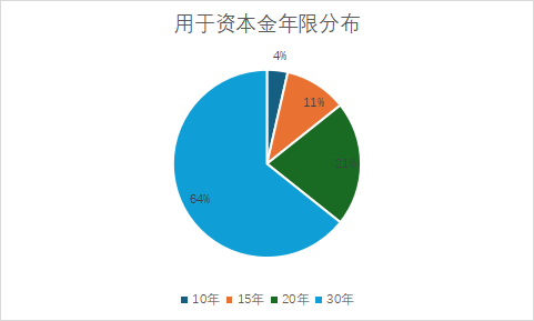 本次專項(xiàng)債券發(fā)行十二至十七期中共計(jì)28個(gè)項(xiàng)目通過發(fā)行專項(xiàng)債券募集項(xiàng)目資本金??偣舶l(fā)行金額25.66億元,占全部發(fā)行金額的10.98%。用于資本金的項(xiàng)目絕大多數(shù)采用了長期限的債券品種,債券期限20年和30年的項(xiàng)目合計(jì)24個(gè)。具體各年限項(xiàng)目分布情況如下圖所示: