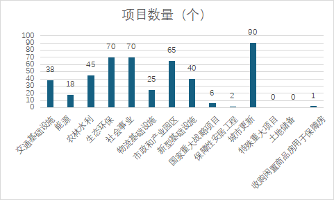 本次專項(xiàng)債券發(fā)行十二至十七期中,城市更新領(lǐng)域數(shù)量最多,為90個(gè);其次是生態(tài)環(huán)保和社會(huì)事業(yè)領(lǐng)域,發(fā)債數(shù)量均為70個(gè);特殊重大項(xiàng)目及土地儲(chǔ)備領(lǐng)域本次暫無項(xiàng)目發(fā)行。具體項(xiàng)目發(fā)行領(lǐng)域數(shù)量分布如下:
